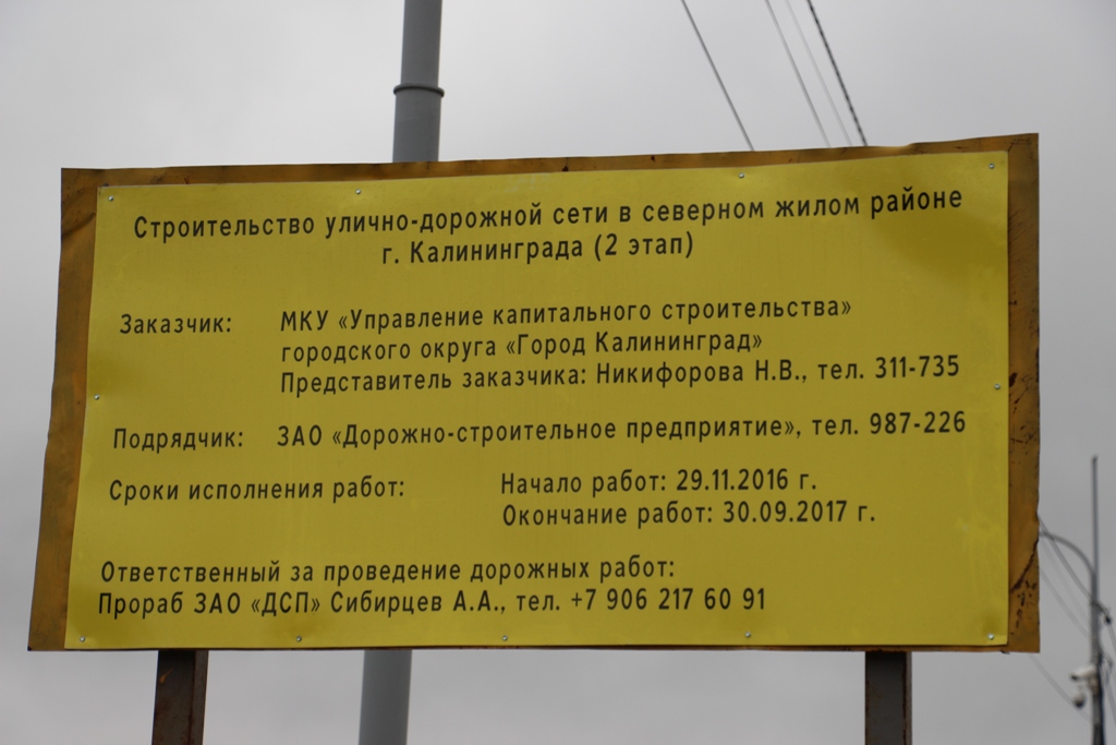 Полное название объекта: «Строительство улично-дорожной сети в Северном жилом районе г. Калининграда (2 этап)».
