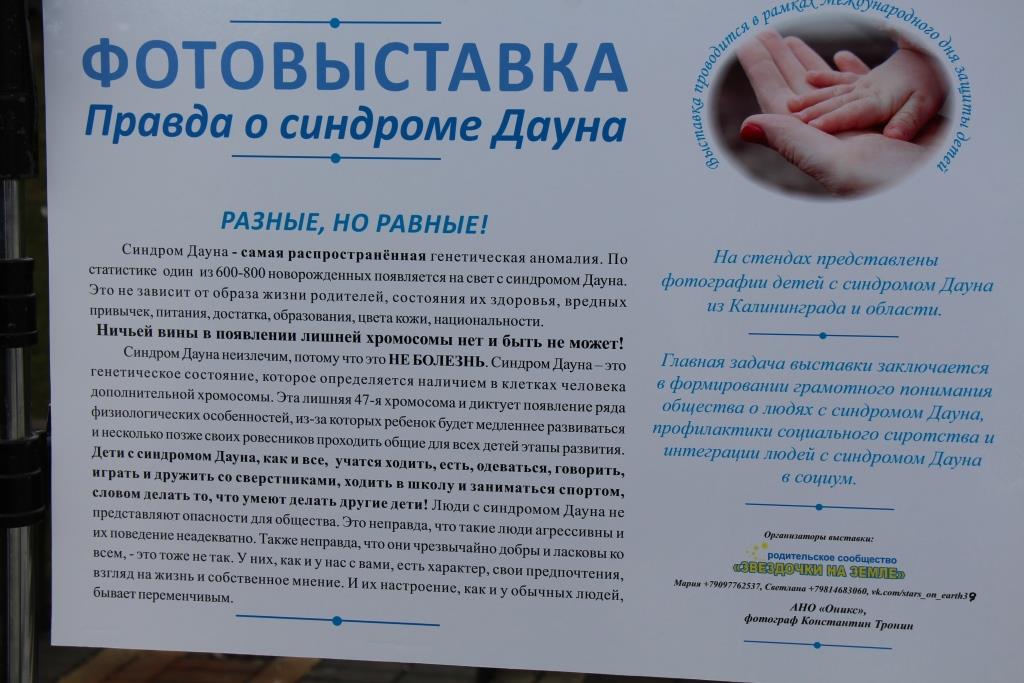 Родители, объединённые обще проблемой, активно общались в социальных сетях, а сегодня, в Международный день людей с синдромом Дауна, договорились встретиться и совместить прогулку с общением. На месте встречи развернули фотовыставку с портретами счастливых детей. Рядом разместили стенд с информацией о синдроме, вызванном лишней хромосомой. Разъяснения и «выход в свет» необходимы, так как в обществе бытуют мифы о природе синдрома и о людях с ним.