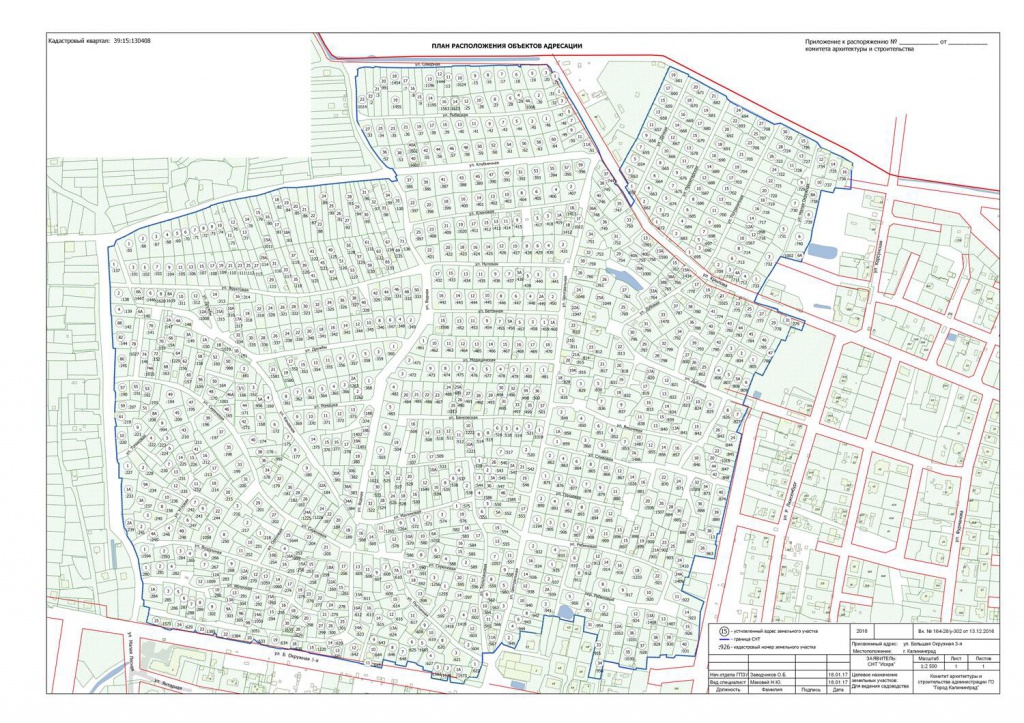 В соответствии с Федеральным законом «О федеральной информационной адресной системе» каждому садовому участку в Калининграде должен быть присвоен адрес с целью последующего внесения его в «Федеральную информационную адресную систему» (ФИАС). Этим информационным ресурсом должны пользоваться все заинтересованные службы и организации города. Отсутствие адреса объекта недвижимости в ФИАС зачастую является препятствием для оформления гражданами в службах и организациях города необходимых документов. На территориях садоводческих товариществ проживает достаточно большое количество горожан, которые не имеют официально присвоенных и нанесенных на карту Калининграда адресов.