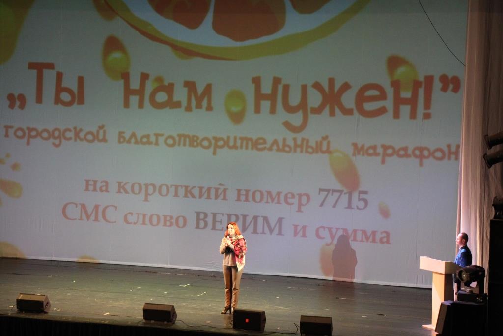 Анна Апполонова напомнила также, что проект проходит в рамках благотворительного марафона «Ты нам нужен!». Волонтеры центра "Доброволец" активно работали в фойе, обеспечивая всех информацией о марафоне, здесь же проходил сбор денежных средств.