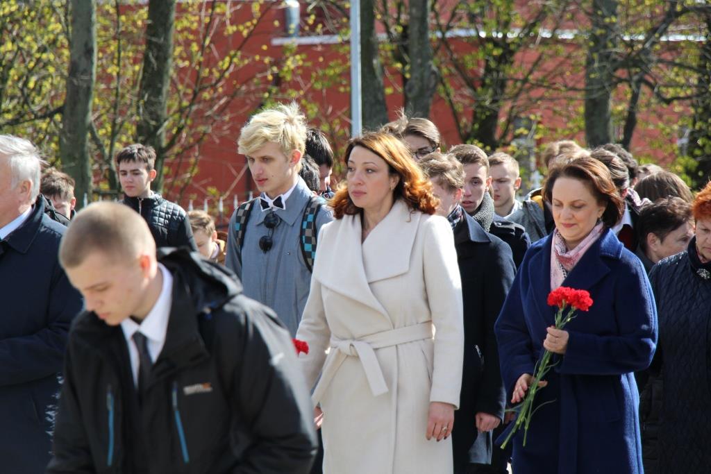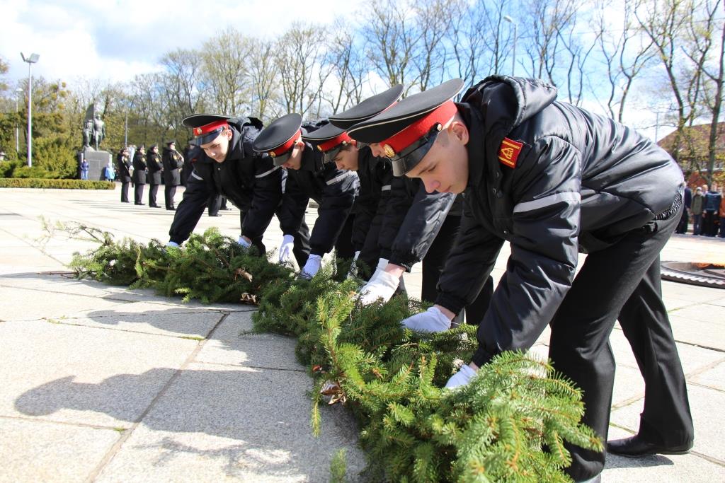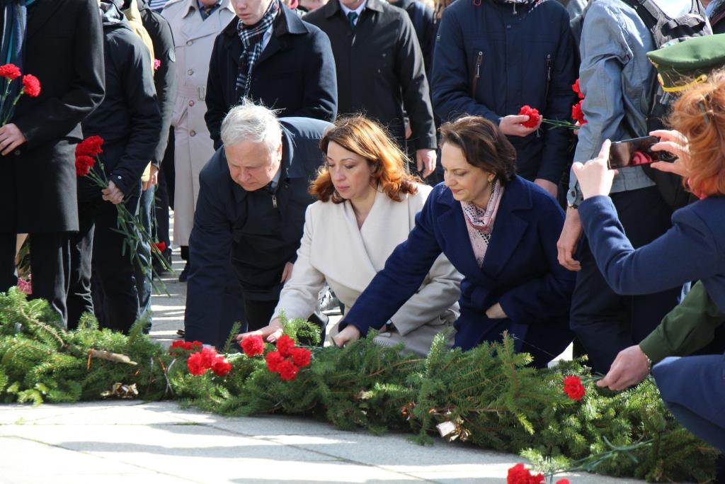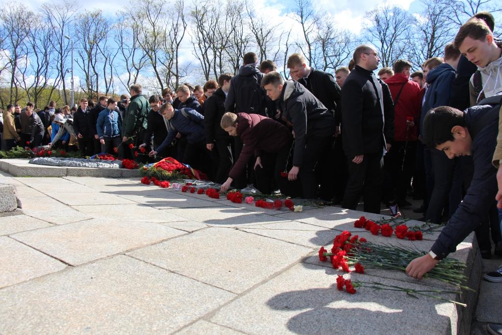 После того, как метроном отстучал минуту молчания, состоялось возложение гирлянды и цветов. В 2017 году право возглавить эту часть церемонии завоевали кадеты школы № 24, победители Балтийских Ушаковских сборов.