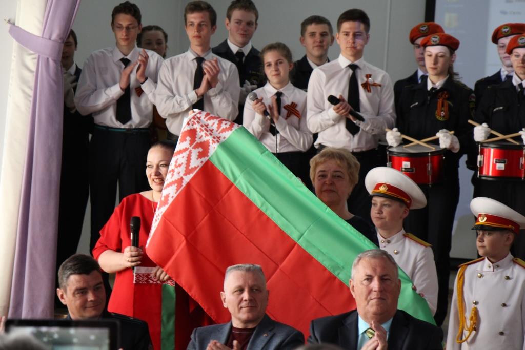 Сегодняшний круглый стол, добавила Анна Апполонова, проводится в школе № 2, учебном заведении, которое славится наиболее яркими традициями патриотического воспитания, имеет серьёзное межведомственное сотрудничество, реализуемое не только в рамках нашего региона. Перед началом рабочей встречи, которую кадеты МЧС открыли хоровым пением и литературно-музыкальной композицией, состоялось вручение подарков на международном уровне. Делегация школы №2, но уже из белорусского Гомеля, передала школе-побратиму государственный флаг своей республики и красно-зелёные победные ленточки, а также сувениры Анне Апполоновой и депутату Государственной думы Александру Пятикопу.