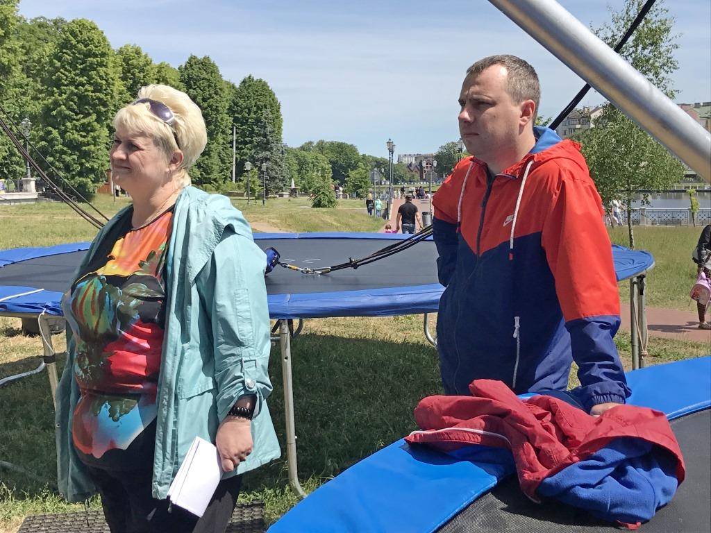 Заместитель председателя комитета по социальной политике Наталья Купрейчик и начальник управления спорта и молодежной политики Владислав Зайцев проверили аттракционы, установленные на набережной Верхнего озера.
