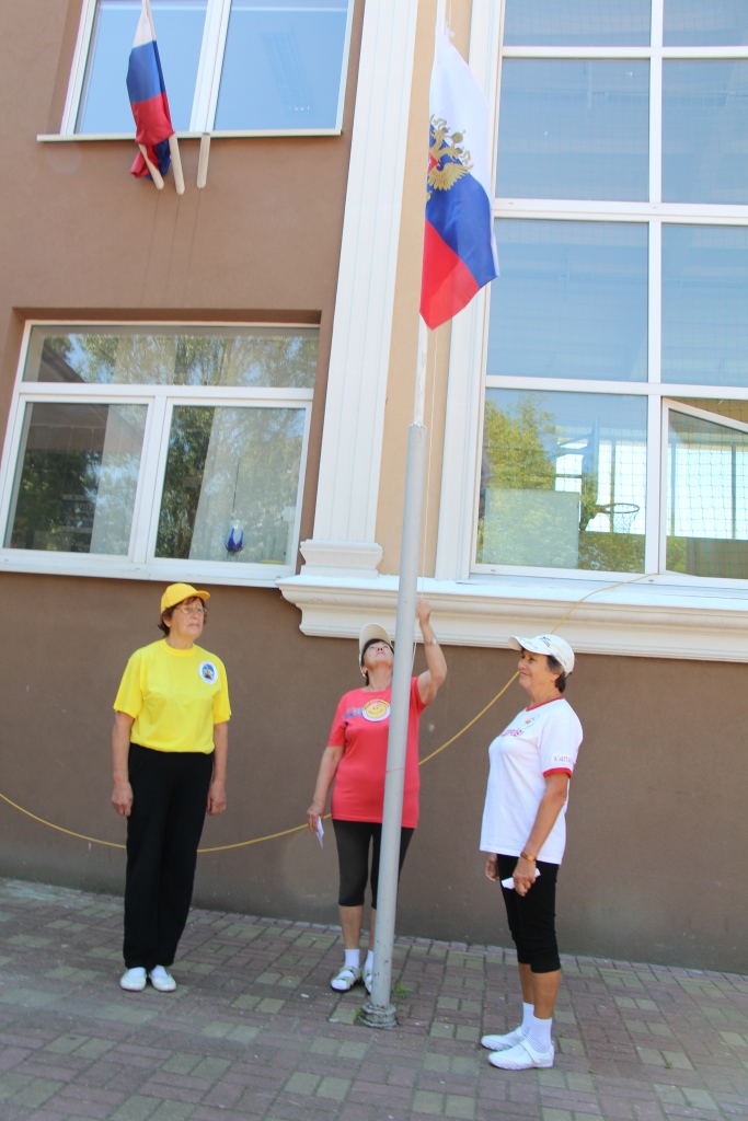 Государственный флаг под звуки гимна подняли победительницы прошлогодней спартакиады.