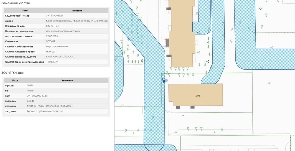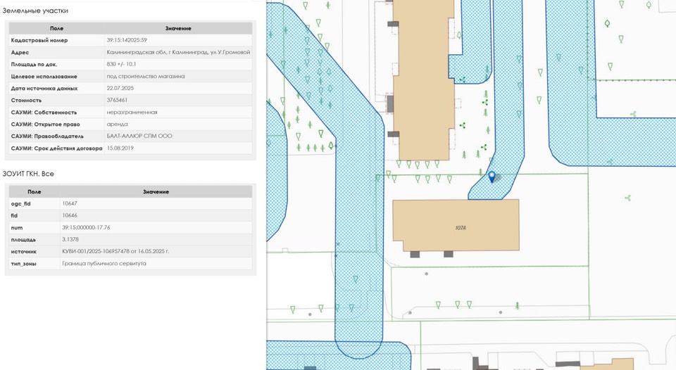 Объект незавершенного строительствах. Степень готовности 26% Кадастровый номер: 39:15:142025:1816, Местоположение: г. Калининград, ул. У. Громовой, д. 107А. Площадь: 830 кв. м, Кадастровый номер: 39:15:142025:59. Категория земель: Земли населенных пунктов. Вид разрешенного использования: Под строительство магазина. Предельные параметры застройки земельного участка: до 5000 кв. м.