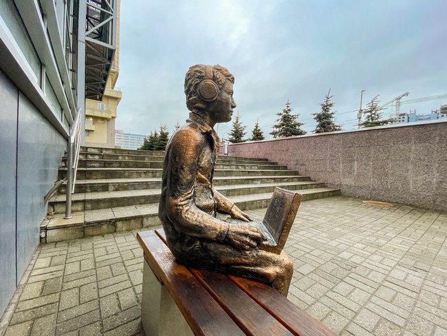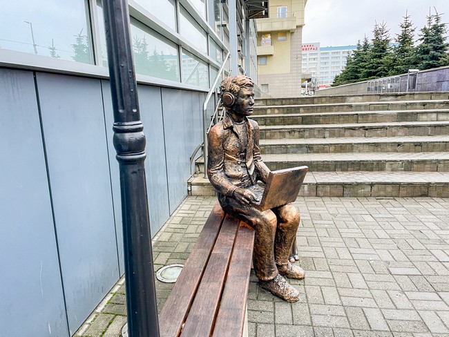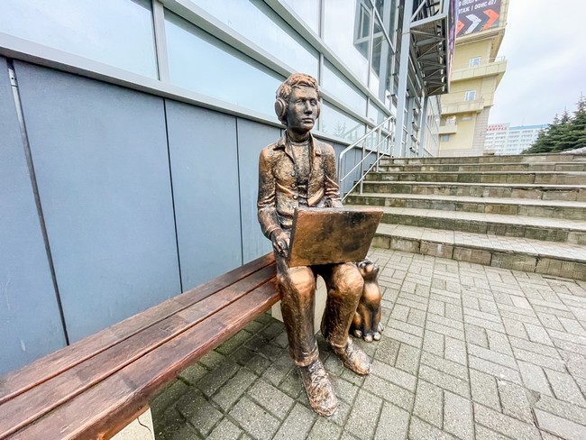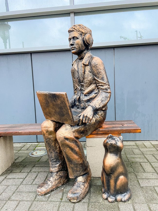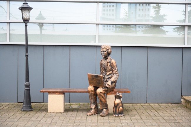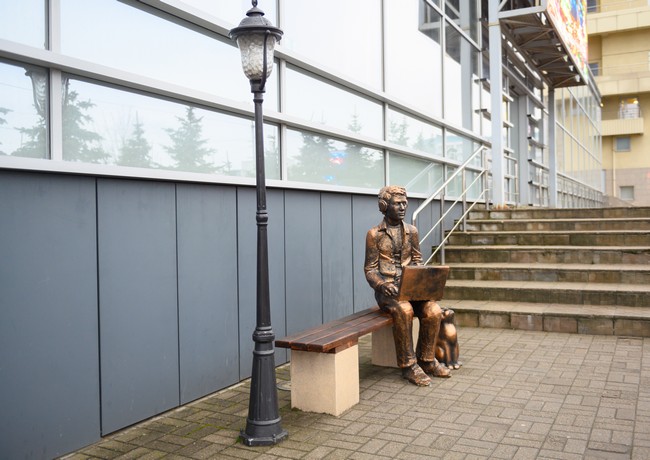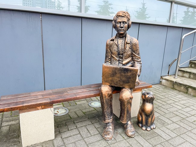 Скульптурная композиция «Мальчик с ноутбуком и кот» располагается у здания компании «Северо-Западный Телеком». Он создан творческой группой скульпторов под руководством известного калининградского художника Олега Сальникова. Композиция олицетворяет современное интернет-сообщество. Она говорит о том, что интернет ― неотъемлемая часть истории телекоммуникаций.