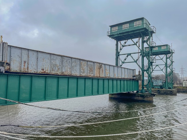 После окончания Второй мировой войны он был восстановлен советскими инженерами и использовался по прямому назначению. К 1960 году мост перестроили: сдвижной южный пролёт заменили на подъёмный, для чего возвели две башни с подъёмным механизмом по аналогии с двухъярусным мостом.