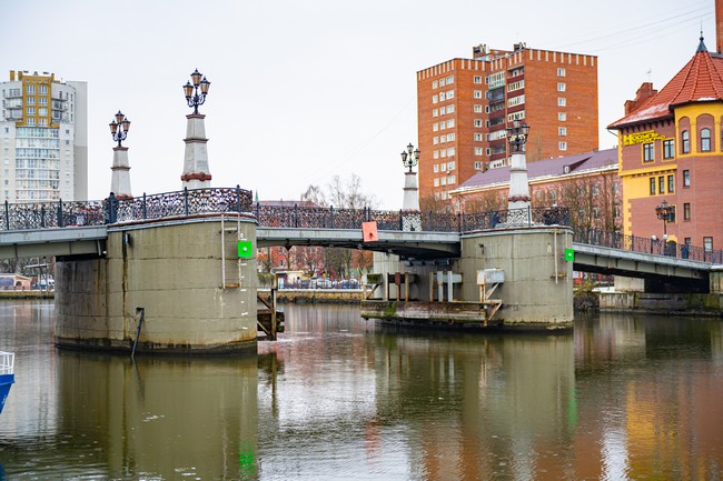 Юбилейный мост — это пешеходный разводной мост через реку Преголю. Он был построен в 2005 году к 750-летию Калининграда, из-за чего и получил название юбилейного. Мост соединяет улицы Октябрьскую и Эпроновскую.