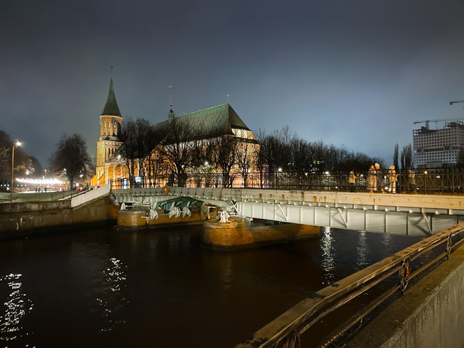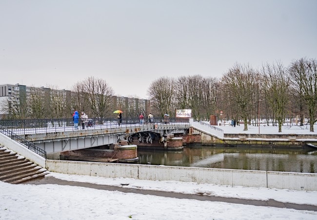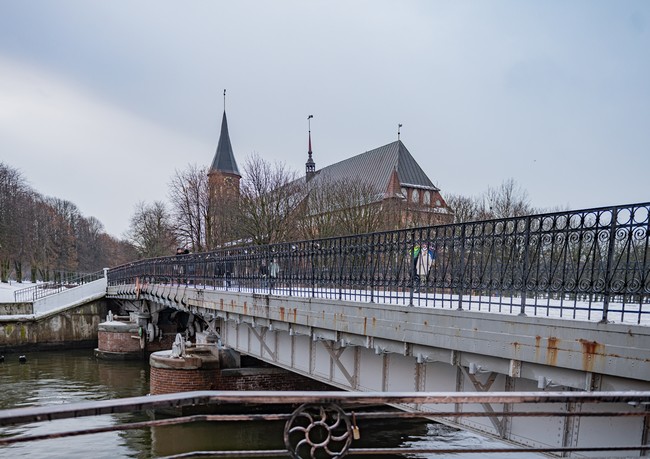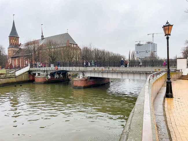 Медовый мост ― самый молодой из семи исторических мостов Калининграда. Он соединяет острова Ломзе и Кнайпхоф. Существуют разные версии о происхождении его названия. По одной из них, член Кнайпхофской ратуши Безенроде оплатил постройку моста бочками мёда. По другой — тем же товаром он оплатил постройку торговой лавки на заречной территории. Скорее всего, эти версии являются городскими легендами, и на самом деле Медовый мост произошёл от слова «хон», что значит «насмешка, издёвка». Построив этот мост, жители Кнайпхофа получили непосредственный доступ к острову Ломзе, в обход Высокого моста, принадлежавшего городу Альтштадту. Таким образом, этот мост стал как бы насмешкой над главным из кёнигсбергских городов. А слова насмешка и мёд ― это созвучные хон и хёниг.